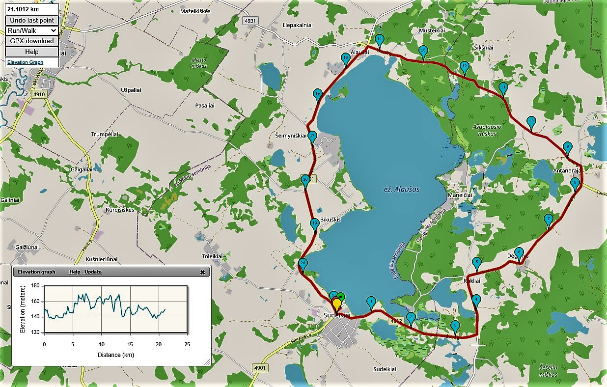 Pusmaratonio ir maratono (2 ratai) distancijų 21,1km rato trasa