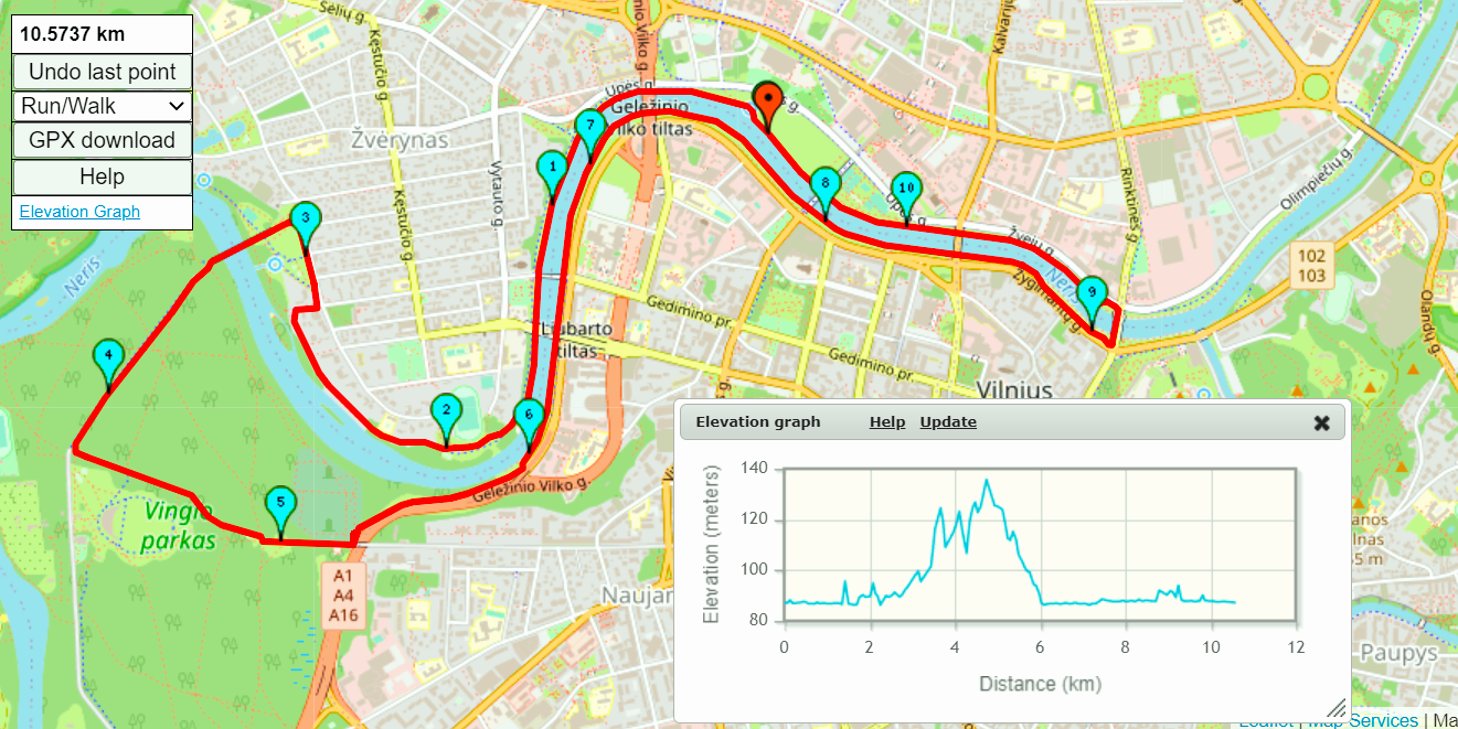 10,6km, Pusmaratonio ir Maratono distancijų trasa: